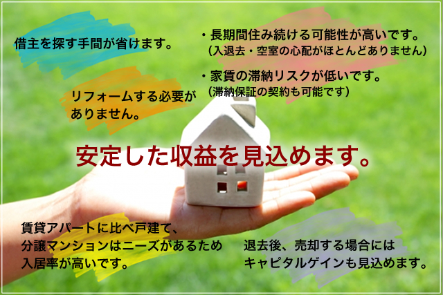 当協会では、ご相談いただく債務者の方の「住み続けたい」というご希望に対してのリースバックに、積極的に取り組んでおります。リースバックに協力していただける投資家の皆様にご登録いただき、債務者はこれまでと変わりなく住み続けることができ、投資家の皆様はすぐに家賃収入を得ることができます。是非、ご協力をお願いいたします。